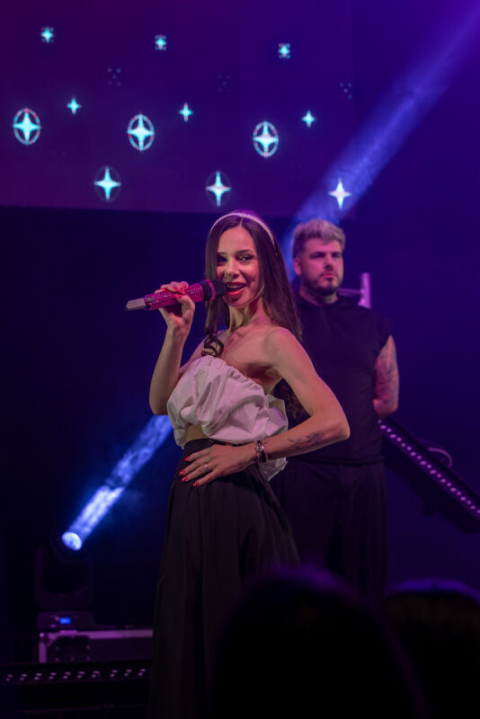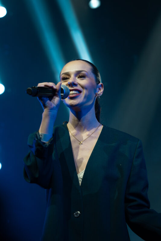 Sur scène, elle s’accompagne du public : pour elle, il fait partie intégrante de sa prestation. Elle partage beaucoup avec lui, cherchant à balayer du regard toute la salle afin que chacun se sente inclus dans le show. Elle ne peut s’empêcher de bouger, de danser, de sourire, mais aussi de transmettre des émotions à travers ses gestes et ses expressions faciales. Ce qu’elle ressent sur scène est avant tout du bonheur, un épanouissement total. Elle se sent à sa place, remplie d’excitation, et tente de savourer pleinement l’instant présent, comme au 6MIC, où elle a chanté à plusieurs reprises devant 500 personnes.