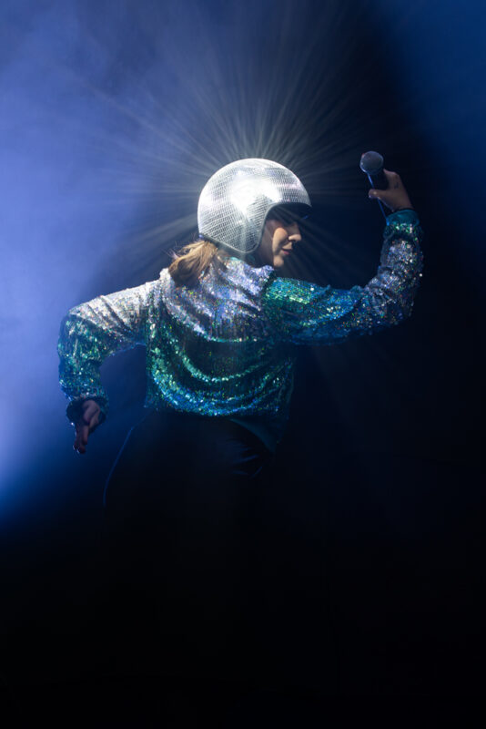 Elle a une personnalité loufoque, rêveuse, sans filtres. Elle se livre avec impudeur parfois et combine tout cela dans ses projets musicaux.